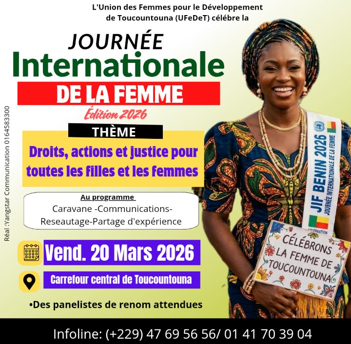 Cette année, la Journée Internationale des Femmes (JIF) à Toucountouna promet d’être exceptionnelle. Le vendredi 20 mars 2026, les femmes...