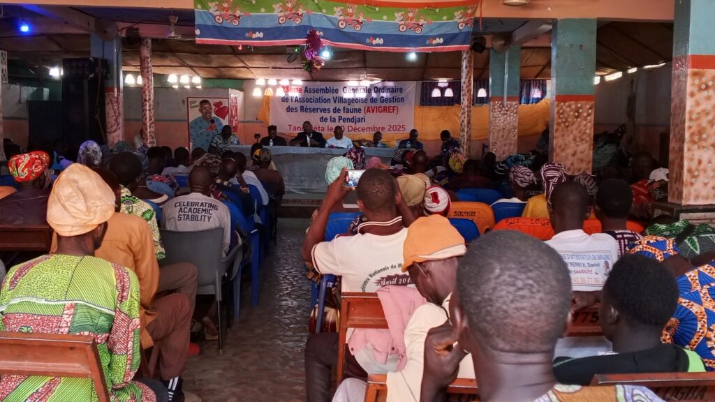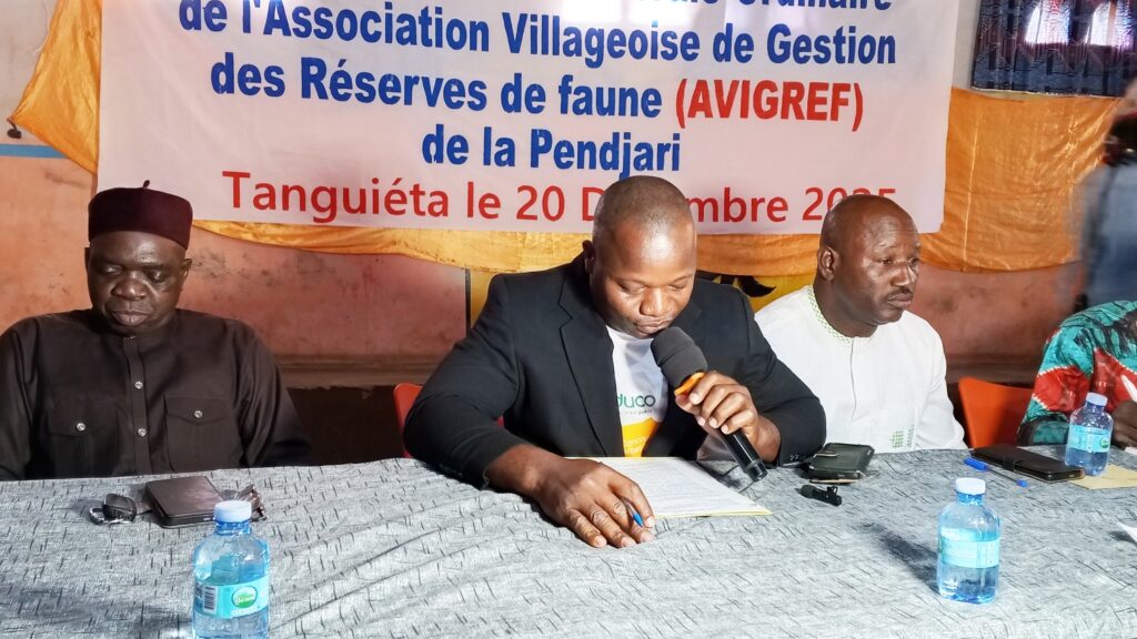 Réunis en Assemblée générale ordinaire le 20 décembre 2025 à Tanguiéta, les membres des 48 cellules de l’Association villageoise de Gestion des Reserves de Faune (AVIGREF) venant des axes Tanguiéta-Porga, Tanguiéta-Batia et ceux de la zone Séri provenant des communes de Kérou, Kouandé et Banikoara, ont passé en revue les actions menées autour du Parc national de la Pendjari. À cette occasion, Toré SOTRATE, président de l’AVIGREF, Alex LALÈ, assistant du Directeur des actions périphériques du parc national de la Pendjari, Bada MOUSTAOU de AVN, chargé du projet Eco- Pendjari et le maire de Tanguiéta, Zackary BOUKARI, ont à tour de rôle salués les acquis, soulignés les défis et réaffirmé la nécessité d’une mobilisation collective pour la préservation durable de ce patrimoine naturel tout en souhaitant les meilleurs vœux de santé, paix, prospérité aux différents délégués des membres de cellules AVIGREF.