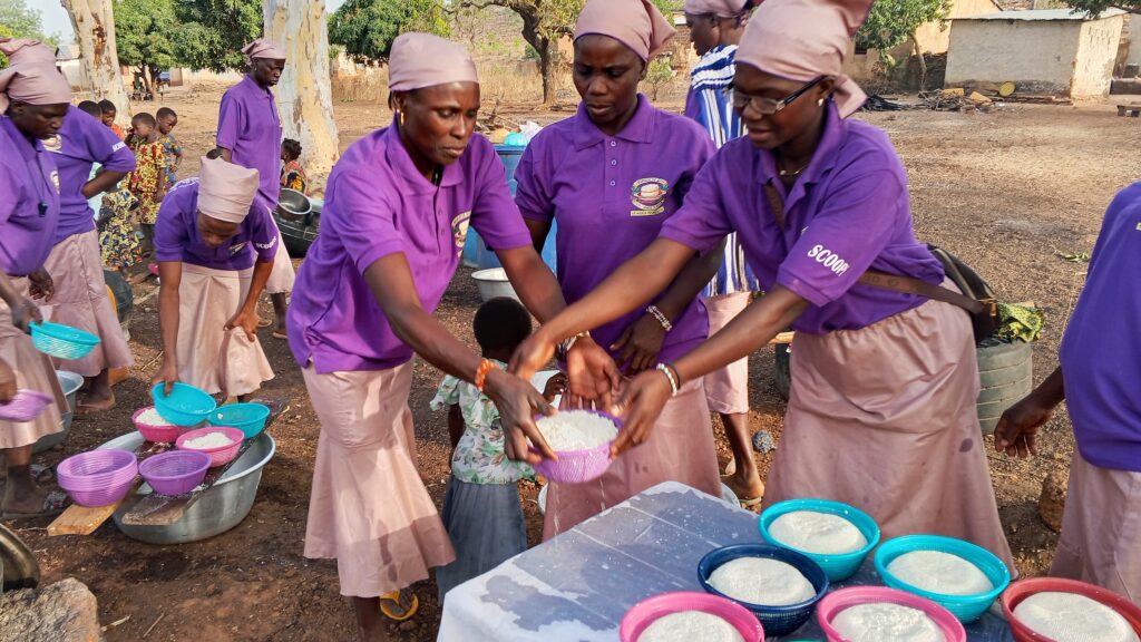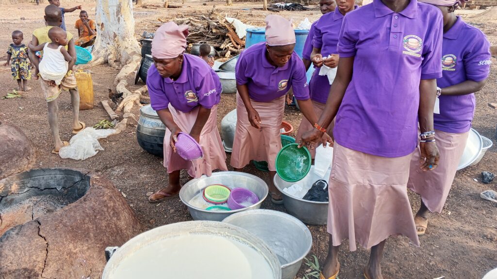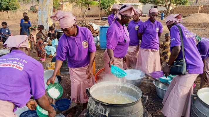 Le lancement a été marqué par une caravane à travers le village. Le cortège a fait escale au domicile du chef village avant de revenir au siège de la coopérative. Sur place, les femmes se sont immédiatement mises au travail. De la préparation du soja à sa mise en passoire, chacune a exécuté sa tâche avec engagement, passion et professionnalisme.