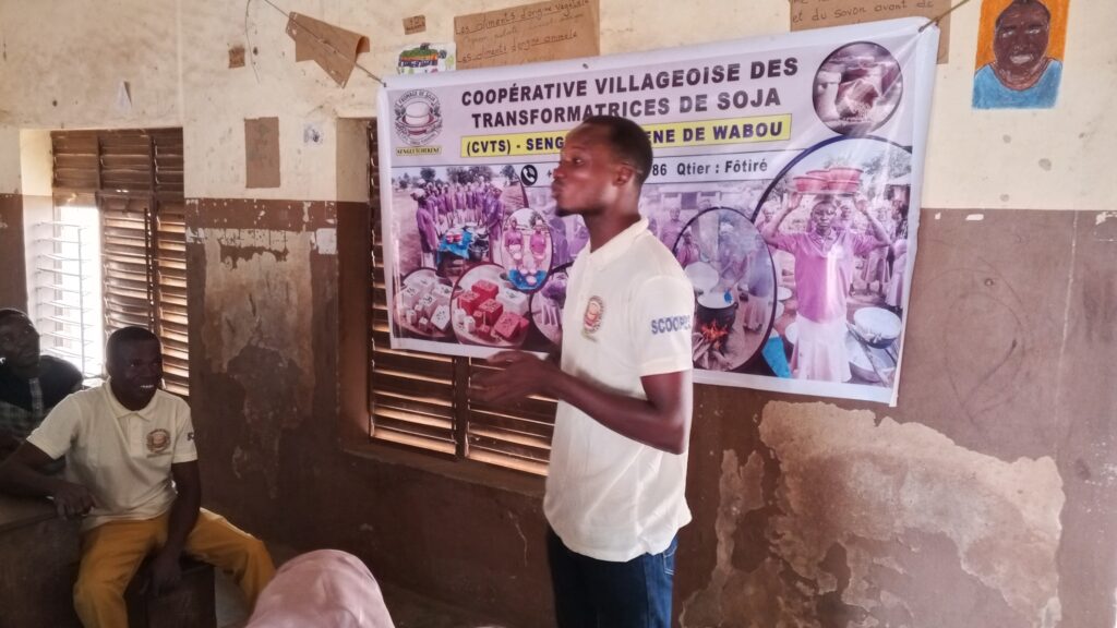 La journée a également été ponctuée par une communication sur les stratégies d’écoulement du fromage de soja. Animée par le spécialiste Akim Akpaki, la séance a permis aux participantes d’acquérir des outils pratiques pour mieux commercialiser leurs produits et conquérir de nouveaux marchés.