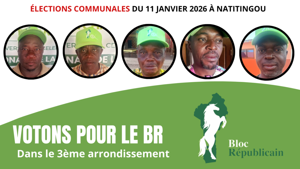 Le 11 janvier 2026, les électrices et électeurs du 3è arrondissement sont appelés à poser un acte citoyen fort. Voter pour les candidats du Bloc Républicain, c’est faire le choix du courage politique, de la compétence et de l’engagement sincère pour Natitingou. L’avenir se construit maintenant, et il se construit avec les candidats du BR du 3è arrondissement.