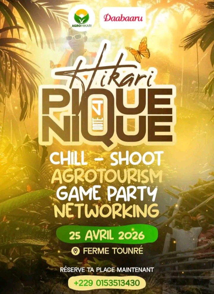 Le samedi 25 avril 2026 s’annonce sous le signe de la détente à Boko, dans la commune de N’Dali. Agro Hikari, en collaboration avec Daabaaru, initie « Hikari Pique Nique », un événement inédit pensé pour offrir au public une véritable pause loin du tumulte quotidien.