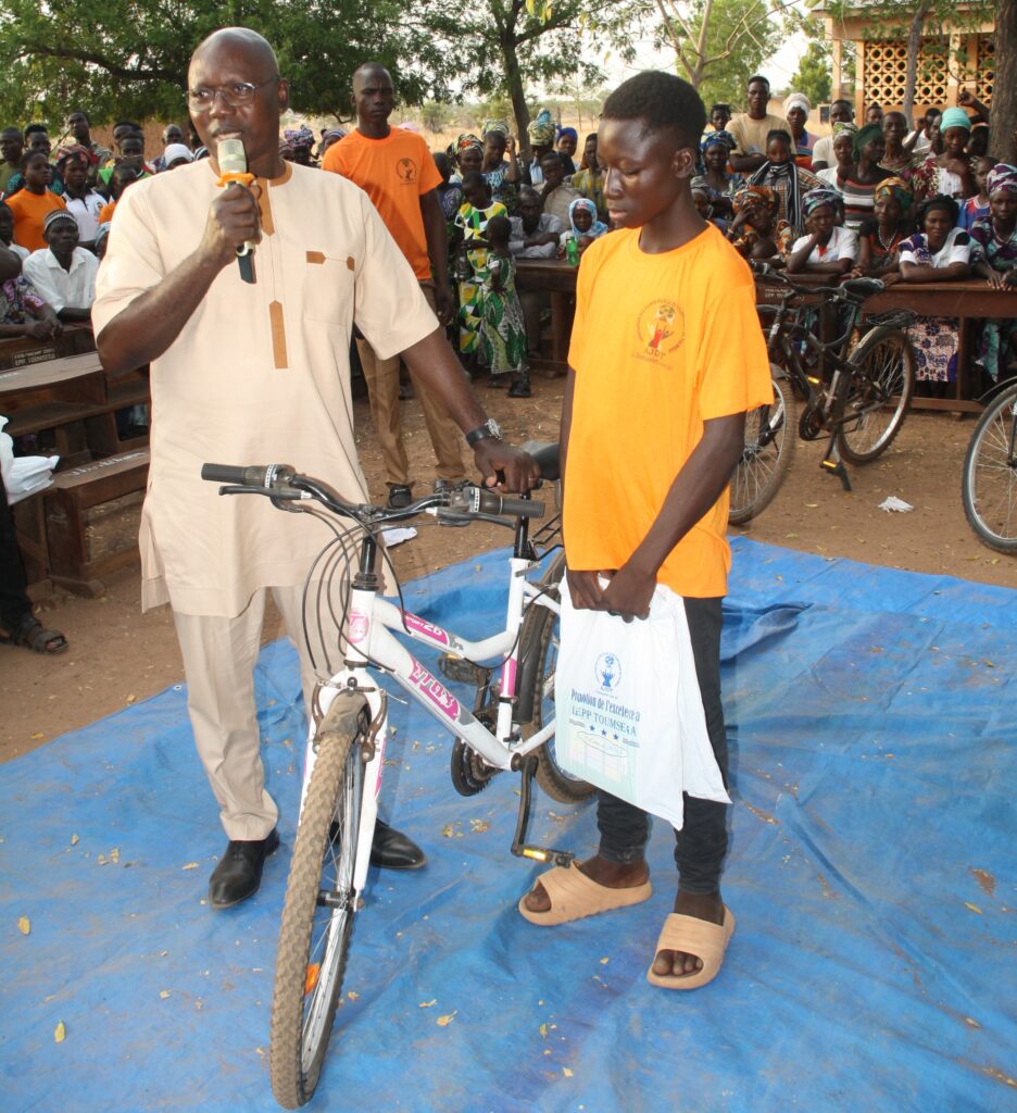 Au total, cinq meilleurs élèves du CI au CM2 ont reçu des kits scolaires, tandis que les cinq premiers au Certificat d’Études Primaires (CEP) ont bénéficié, en plus des kits, de vélos tout terrain, destinés à encourager leur persévérance et à faciliter leur mobilité. La cérémonie, marquée par une forte mobilisation des élèves, enseignants, parents et invités a mis en lumière le travail, la discipline et la constance comme clés de la réussite scolaire.
