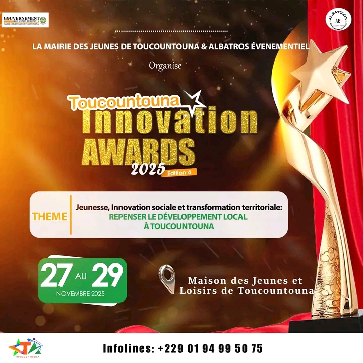 Après un mois de préparatifs, tout est désormais fin prêt pour accueillir la quatrième édition des Toucountouna Innovation Awards (TIA 4), un événement initié par la Mairie des Jeunes en partenariat avec Albatros Événementiel et plusieurs acteurs engagés. Considéré comme le plus grand rendez-vous annuel de valorisation des talents locaux, TIA célèbre le mérite des femmes, des jeunes, des organisations et des personnalités qui contribuent au développement de la commune et bien au-delà.